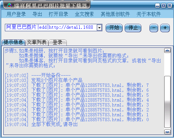 瑞祥阿里巴巴是一款完全免费的阿里巴巴图片下载工具,支持图片批量下载、部分下载,并保存图片的描述信息。