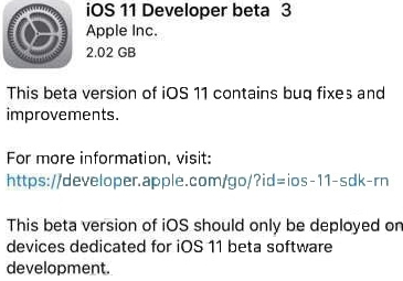s11 beta3开发者预览版固件最新,这是官方推出的最新版本的beta3的测试版按本,ios11在第一个测试版本备受关注,需要第三个测试版本的可以在进行下载使用。大小大概在2GB左右哦!