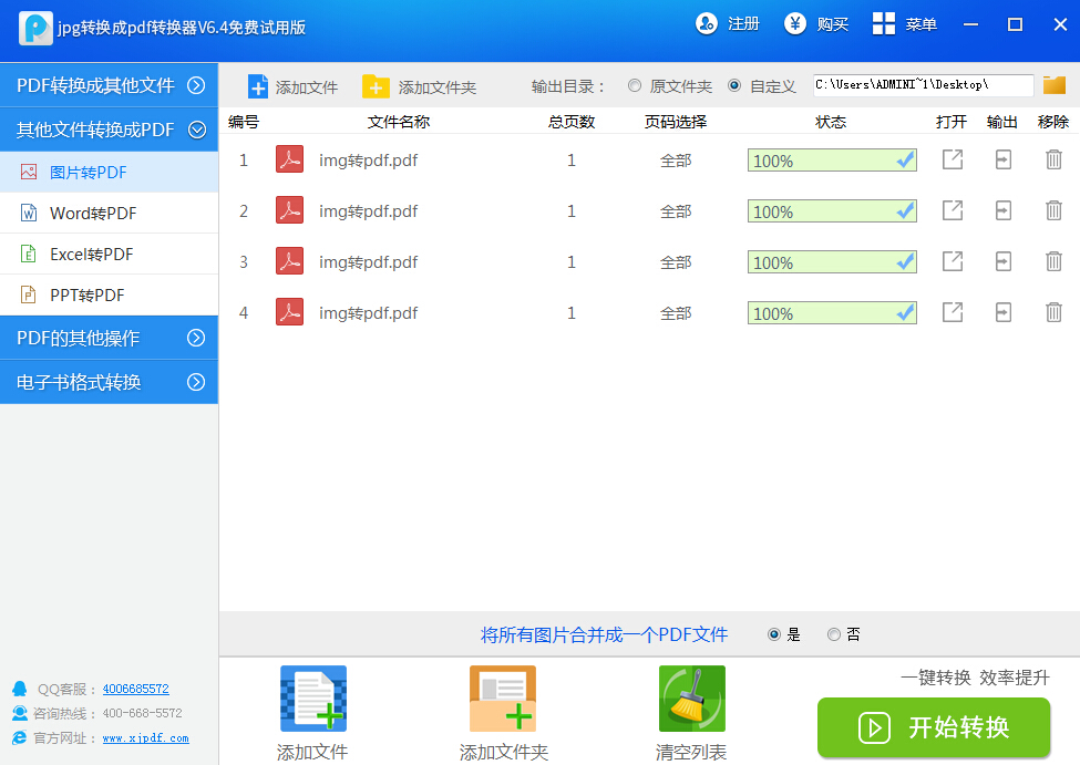 只需要将您的JPG或其他图片格式文件用鼠标拖拽到JPG转PDF转换器窗口中的拖拽区域,点击开始转换按钮,转换立刻就开始!一杯咖啡的工夫,JPG转 PDF转换立刻完成!