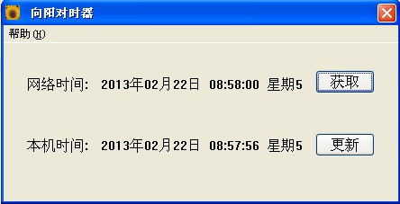 向阳对时器是一款小巧实用的时间校对器,向阳对时器功能强劲,支持一键获取网络时间,快速显示本机时间,如果不一致,就可一键更新。