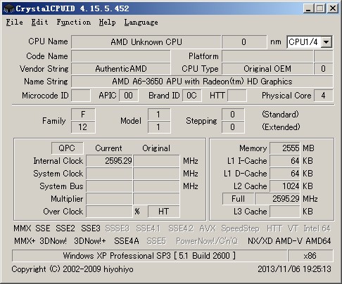 CpuIDMax是一款功能和WCPUID基本相同的工具,但是CrystalCPUID对处理器支持的范围更广,相关信息:Cache、类型、速度等等,它还能显示Windows的版本,内存利用率。