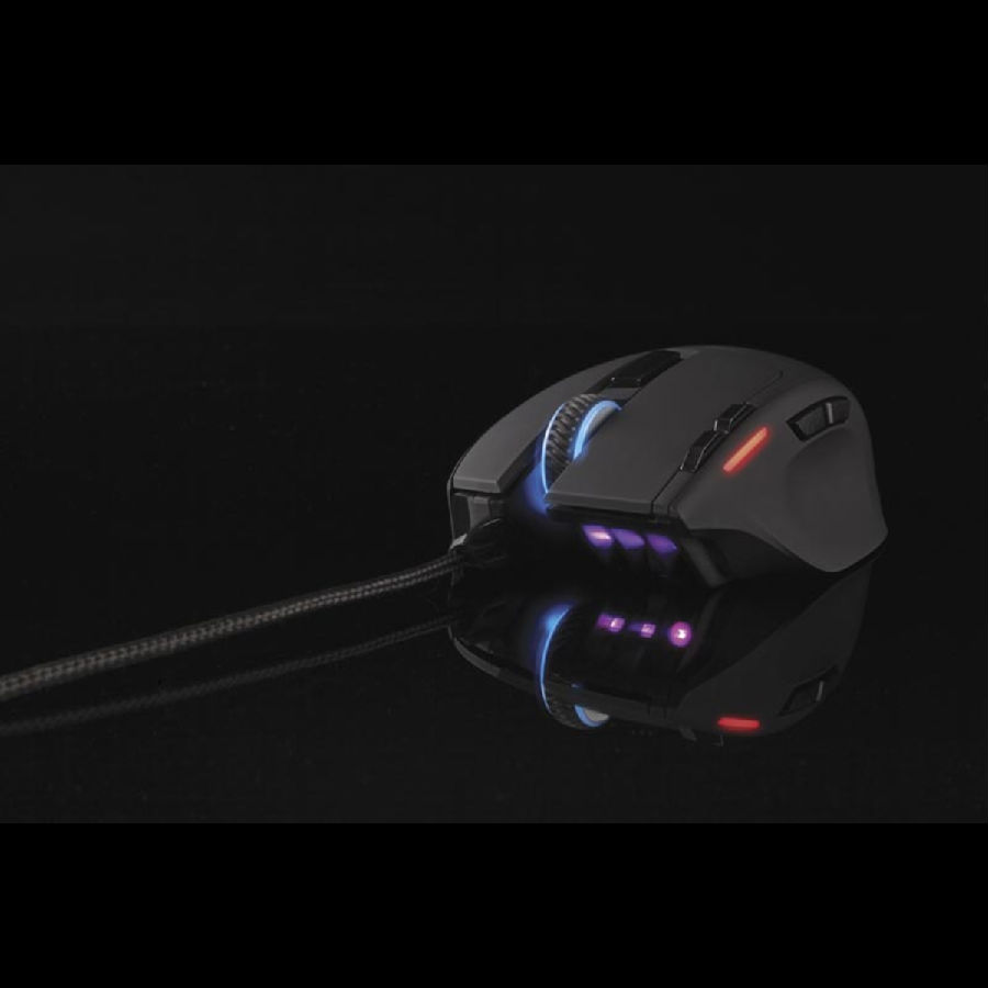 CORS Gaming Sabre RGB 8,200 DPI 激光游戏鼠标非常轻巧,其重量仅为 100g,可实现始终如一的精密跟踪,具有 1,000 Hz 刷新率,有 8 个可配置按钮以及响应极快的开关,因此使用起来非常舒适、流畅。 四区 1680 万种颜色背光让您可以为鼠标打造符合您的风格的个性化美丽外观。