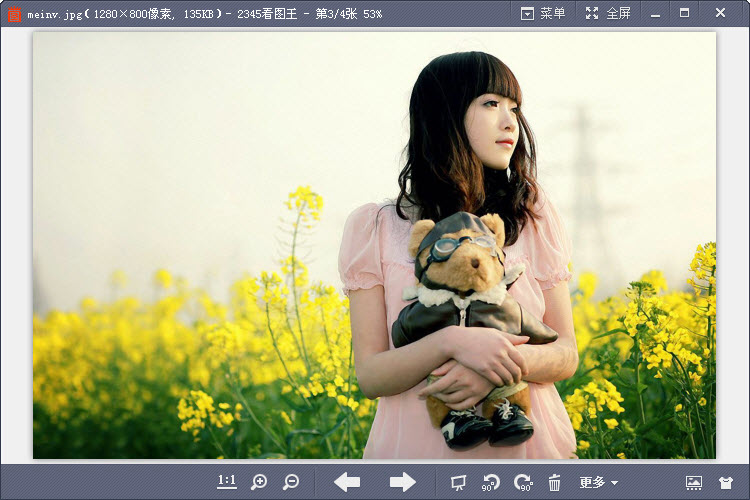 除了普通的窗口模式,2345看图王还为您提供了更适合大图片查看的全屏模式及可以自动调节播放速度和顺序的幻灯片模式;