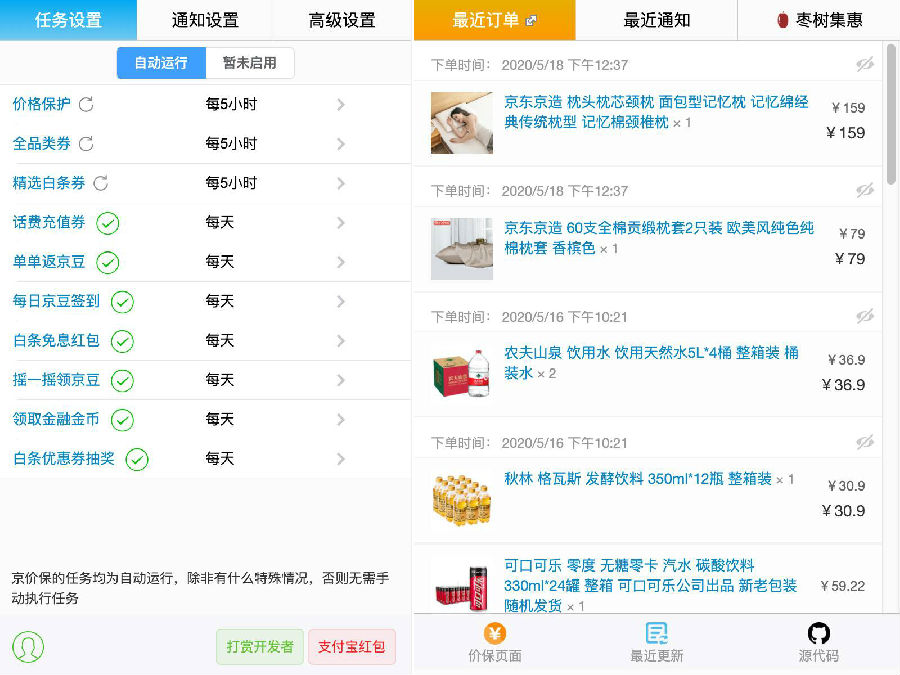 京价保是一款面向京东商城的插件,它能自动监控最近订单商品的价格变化,在商品降价时自动申请价格保护,还能够帮助用户领取各种京豆钢镚等物品,有需要的用户不要错过了,欢迎下载使用!