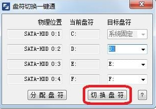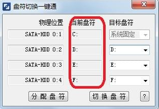 1、后,打开盘符切换一键,可以看到当期磁盘盘符