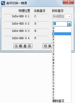 1、可一键切换现有盘符至目标盘符或删除盘符;