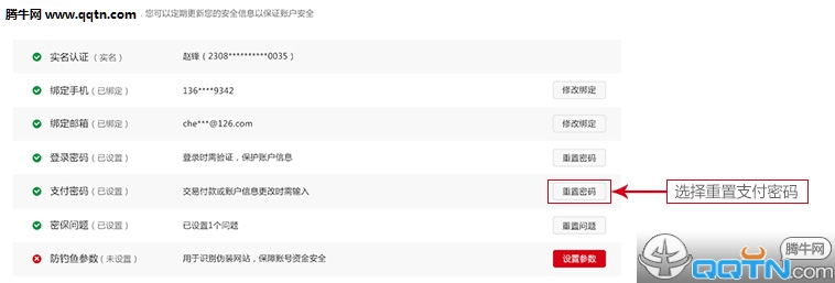 3.忘记支付密码的时候,可以通过以下方式进行重置
