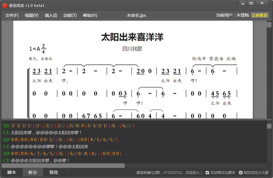 番茄简谱软件一款专注于简谱排版的软件,本软件一切围绕着如何方便和快捷的输入简谱,如何保证乐谱输出的质量展开的。我们参考了国外流行的ABC曲谱脚本,并根据简谱的特性原创设计了番茄简谱脚本且应用于此软件中。同时本软件是一款免费软件,没有任何功能限制。欢迎使用。