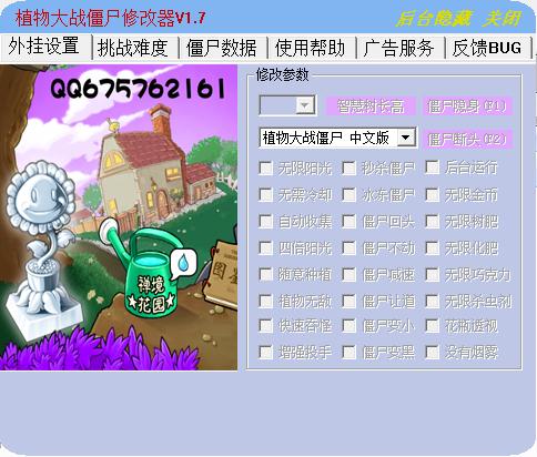1、修改阳光,卡片无CD,罐子透视,允许后台,植物无敌