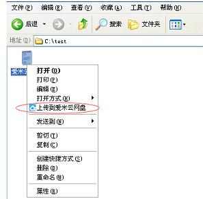 从系统文件夹中选择文件, 右键菜单中 “上传到爱米云网盘”