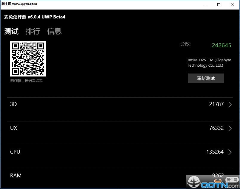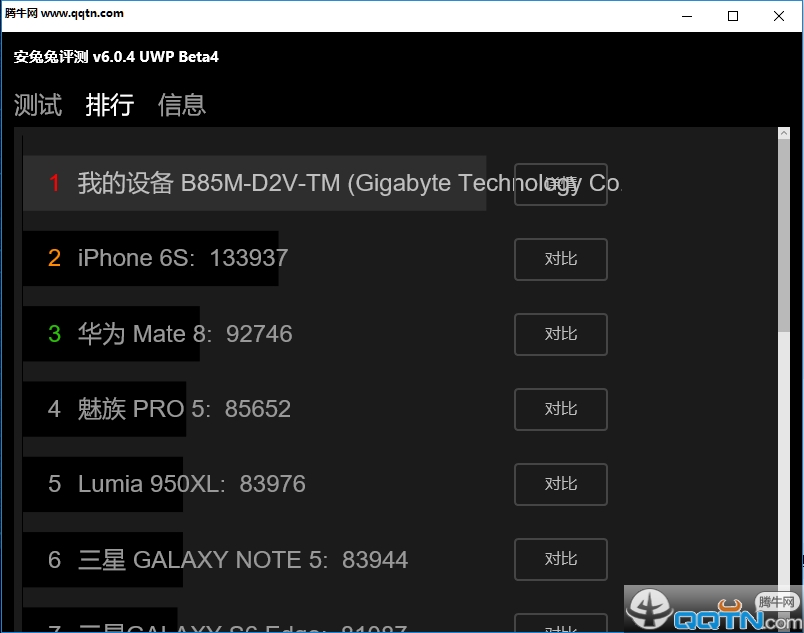 安兔兔评测UWP Windows10通用版下载是知名的跑分软件安兔兔针对Windows10设备推出的通用应用版本,支持跨平台对比,通吃所有测试设备。Android、iOS、Windows Mobile 10、Windows、Mac OS X平台 !