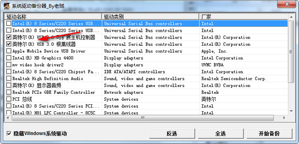 勾选需要备份的驱动程序