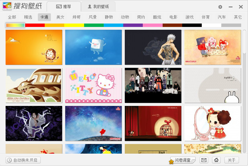 搜狗壁纸是搜狗旗下一款壁纸一键下载及更换工具,在这里你可以找到数以万计的壁纸美图,点击任一图片即可自动更换为当前的桌面壁纸。你也可以把喜欢的图片标记为“我喜欢”,根据自己喜好创建自动定时更换壁纸的列表。该列表中也可包括壁纸、本地壁纸、以及官方TOP精选壁纸(官方壁纸需联网)。