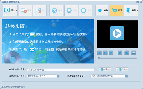 是一款专业的的功能全面的视频或音频格式转换工具,软件可以帮助您在各种流行视频格式之间相互转换,比如可以在AVI, WMV, VCD, SVCD, DVD, VOB, MOV, MP4, 3GP, MTS, FLV, MPEG, SWF等几十种格式视频之间相互转换。软件还可以在MP3, WMA, WAV, AAC, AC3, M4A, OGG,FLAC等音频之间相互转换。软件可以转换各种高清摄像机录制的视频如MTS、M2TS、H.264/AVC AVCHD、MPEG-2为各种常用格式的视频,软件支持转换各种移动设备的音频和视频格式,可以将各种视频转换为在如各个型号的iPhone、iPad、iPod完美播放的视频或音频。可以转换在各个型号的三星,苹果iPhone,华为,魅族,htc,联想,OPPO,vivo,诺基亚,小米,罗拉,索爱手机,黑莓、以及各种国产手机所支持播放的视频和音频格式。软件可以转换各种DVD、VCD、SVCD光盘视频。