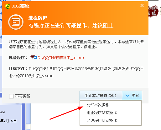 第四步:360拦截,点击允许通过