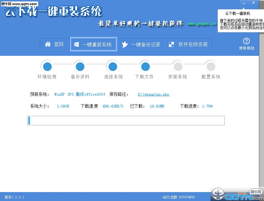 1.云下载重装系统速度取决于你的网速及电脑配置快慢和高低。