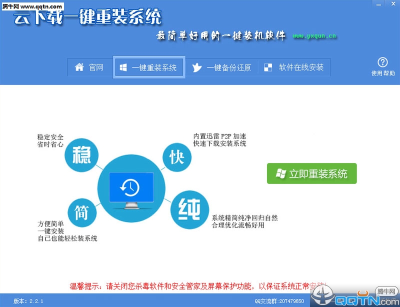 云下载是一款专业的系统重装软件,这款软件不仅完全免费,而且特别适合电脑小白使用,一键傻瓜式重装系统,帮助用户一键安装winxp、win7、win8等操作系统,另外软件操作简单,用户无需专业知识,只需根据安装提示进行安装即可,需要的朋友快来本站免费下载使用吧!