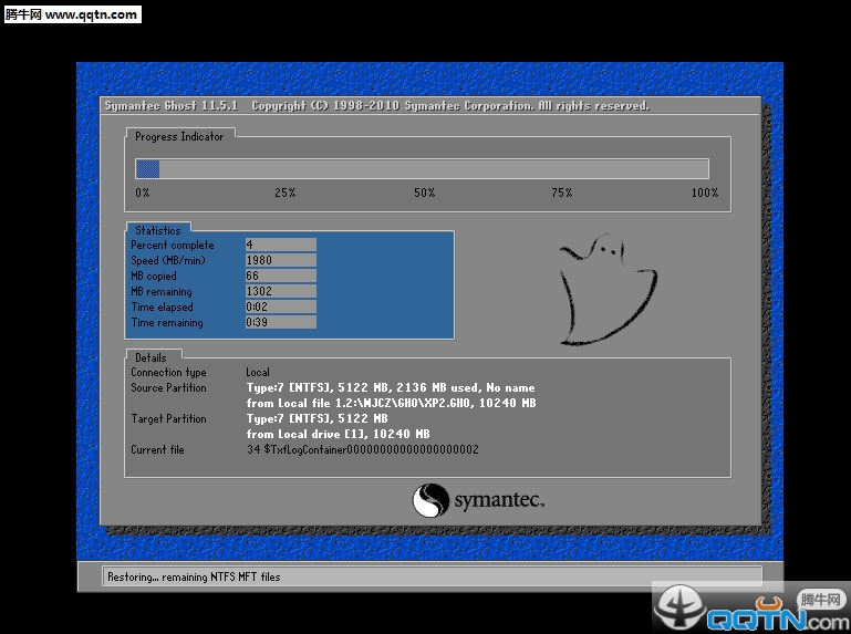 8、GHSOT完成后自动安装系统大概10--15分钟完成安装。