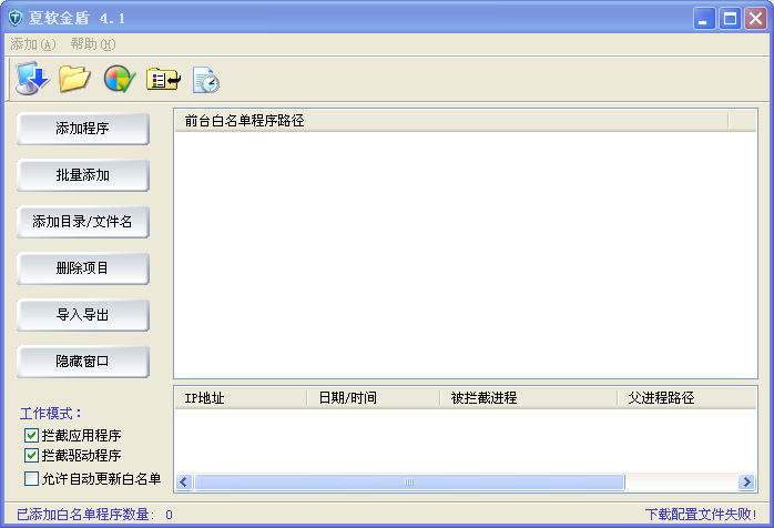 夏软金盾能够杜绝病毒木马的入侵,夏软金盾统一管理网络,自定白名单,并提供应用程序使用限制,特别适合网吧等系统使用。