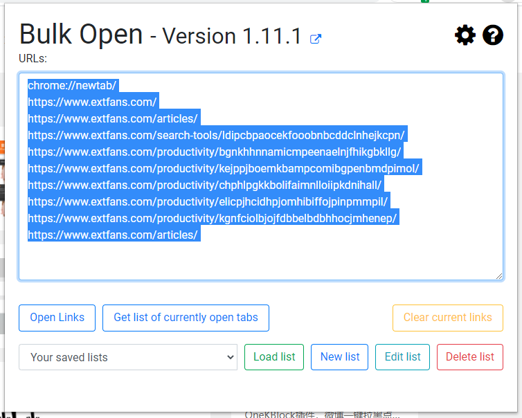 如果你需要将你当前所有网页的url都一次性复制下来,那么只需要点击插件图标,就可以在小弹窗里复制和编辑这些url了。