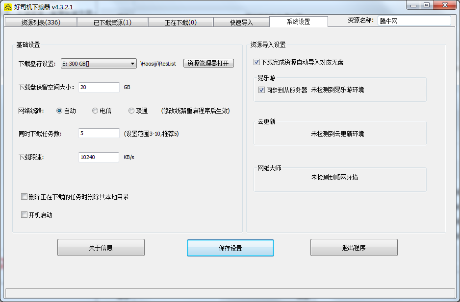 3、系统设置,这里全部可以直接使用默认设置,但是开机启动建议开启,保证服务器在重启后可以及时启用"好司机"接收游戏更新;