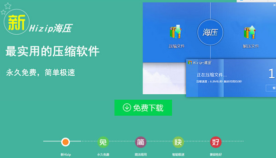 海压软件英文名“Hizip”,是一款最实用的文件解压缩工具,永久免费简单极速,兼容性强支持各种压缩格式,简洁又好用。