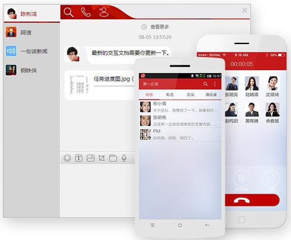 第一企信支持PC和智能手机之间的跨终端协作,充分实现移动办公,具备即时消息、免费、电话会议和企业通讯录等多项即时通讯功能,为企业量身打造,满足企业随时随地、跨网络、跨终端的沟通需求,在充分节省通信成本的基础之上解决高效便捷的沟通。