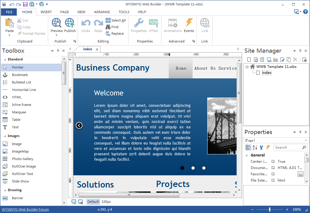 网页制作工具WYSIWYG Web Builder 是一款所见即所得的网页生成工具,不需要学习HTML,你就可以创建自己的网页。一切都可以用鼠标来控制,所以没有问题,如果你不需要输入什么代码。