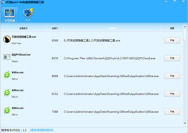 支持隐藏64位程序,完美兼容win764/32及xp32位系统。