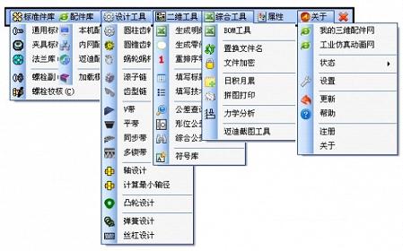 迈迪三维设计工具集是一套三维,面向机械设计师,配合主流三维设计软件SolidWorks使用,主要功能包括 国标件库、夹具标准件库、齿轮专家设计系统、链轮专家设计系统、凸轮专家设计系统、带轮专家设计系统、弹簧设计系统、公差自动标注系统、综合公差查询系统、力学分析工具、轴设计工具、符号库、拼图批量打印工具等等。