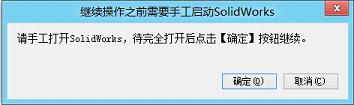 【注意】:一定要等到SolidWorks完全启动后单击“确定”按钮继续执行,否则可能会启动两个SolidWorks。