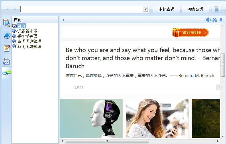 经常在自习室、图书馆学习的学生,以及任何需要查词典而网络条件不好的用户一定不能错过此次的本地增强功能。提供下载到本地的词典包括:简明汉英加强版、简明英汉加强版、整合了122本词典的行业词典、以及地道例句词典。