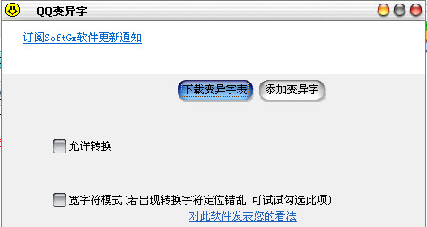在你发送QQ消息的时候,把你的消息里的简体字转换成怪怪的字。像“ωǒ們、熹ㄡ欠、苛噯”这种怪字。主程序最小化后将可以自动缩到任务栏右端托盘区。