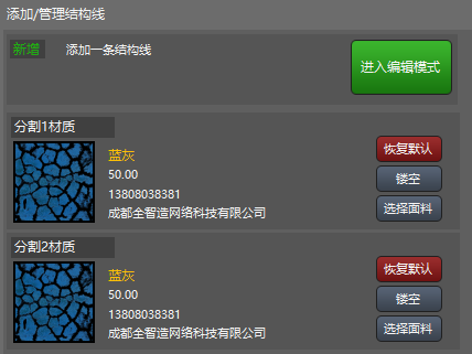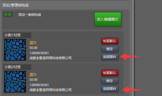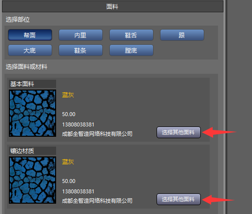 在结构面板或面料面板均可以进行面料的更换,如下图: