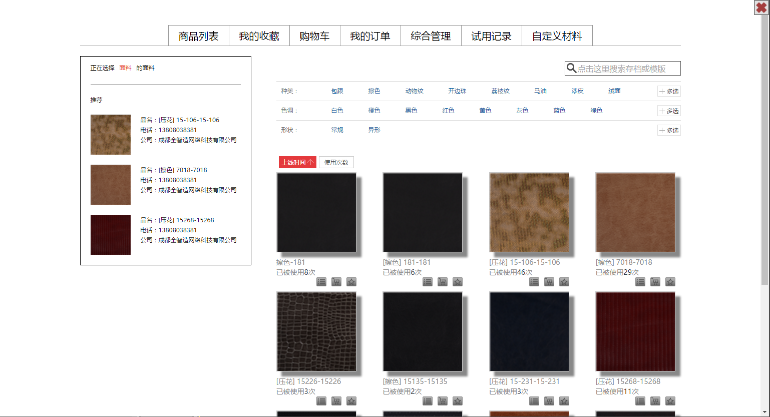 点击“选择面料”或“选择其他面料”,则可以打开材料商城,如下图: