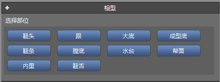 点击“结构”按钮,打开结构及其对应组件的面板,点击需要调整的部位的按钮,展开调整的界面,如“帮面”: