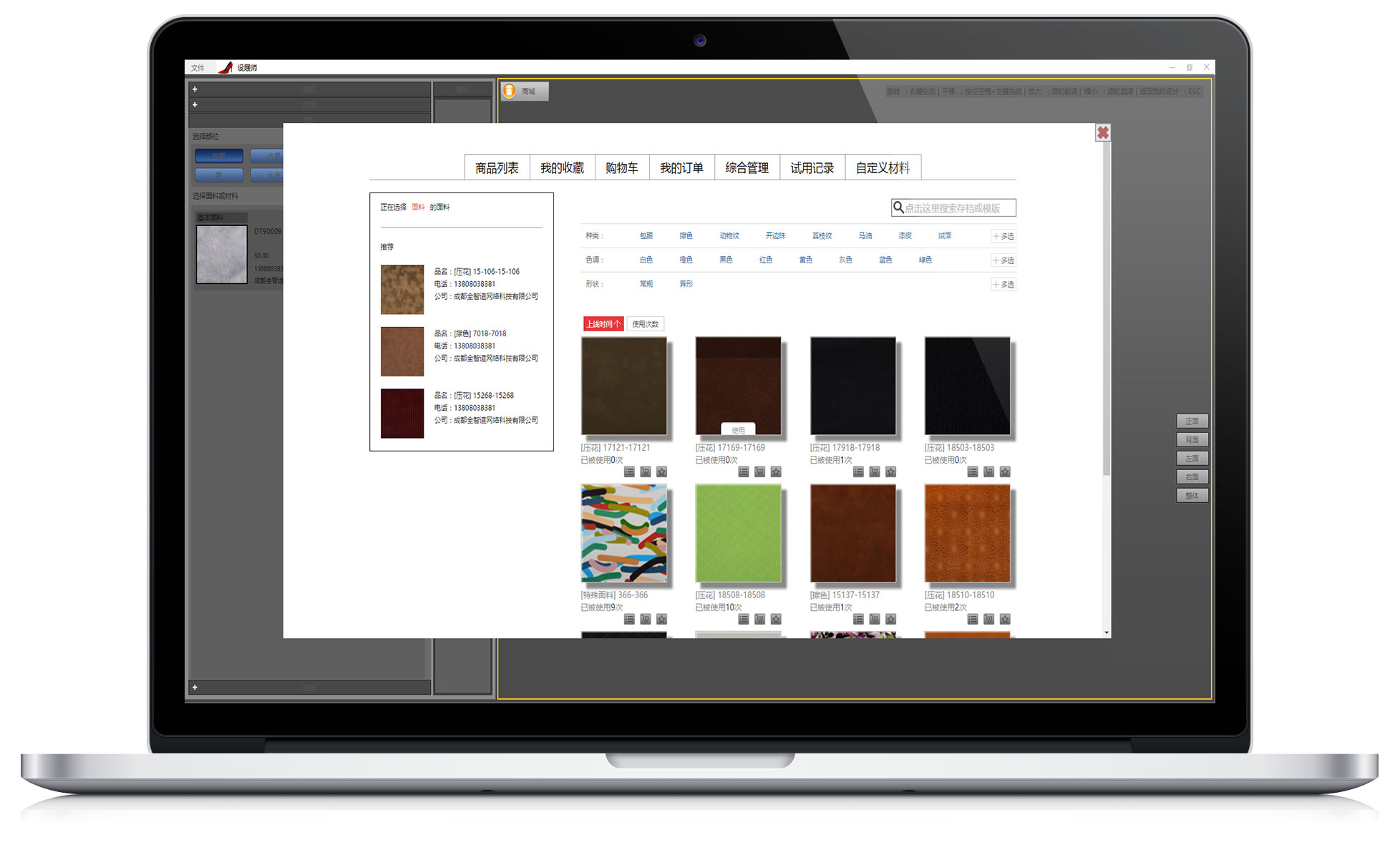 在更新后的软件中,实时更换面料更加的方便和智能,并且真实度也是超越以往,不论是绒面还是PU质量的材料在我们的软件中都能非常直观的表现出来,更换面料如下图二: