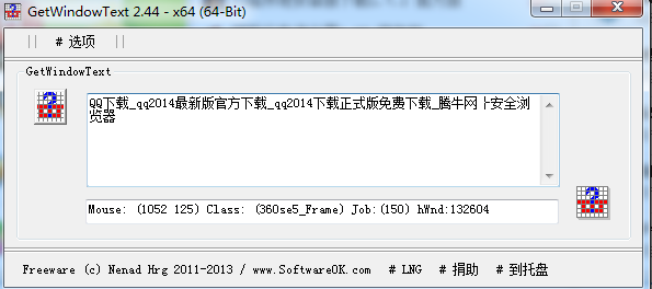 GetWindowText是一款专门用来提取电脑正在运行窗口文本标题的工具,支持所有窗口文本的提取,提取成纯文本内容,大家都知道,窗口标题是不能复制的,比如打开的某个网页,网页的标题就会提取转换成纯文本,或者我们打开某个软件界面或者文件夹窗口,软件也可以提取当前窗口标题文本,就不用我们自己手工去将标题敲出来,直接提取转换成文本,我们就可以复制使用了。