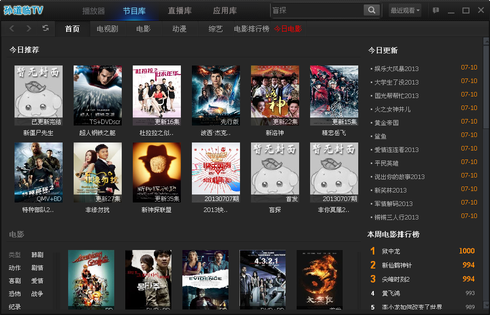 孙道临TV是一款全能播放器,能够观看网络上的高清视频,从网络视频到网络电影,清晰度提高3倍,在线影院级视听享受,提供上万部的电影、电视剧、动漫、综艺等资源,每日更新,最新最热尽在其中,是电脑里必备的P2P点播软件。