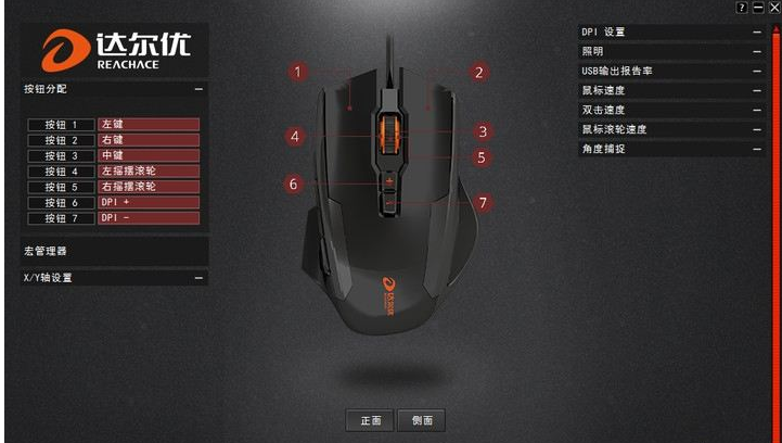 按键(默认):左键、右键、滚轮、DPI