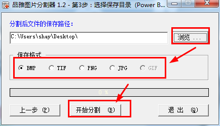 4.设置分割后图片保存路径——设置保存格式——开始分割