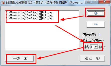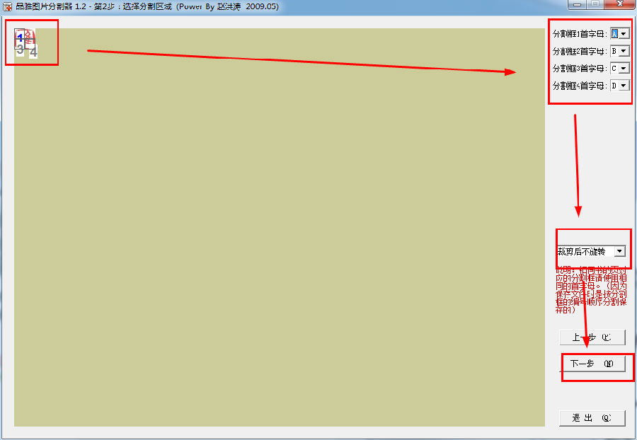 2.调节图片分割位置——设置分割框首字母_设置裁剪后是否旋转——下一步