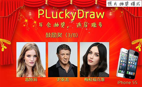 3.姓名抽奖、号码抽奖、数字抽奖、照片抽奖;