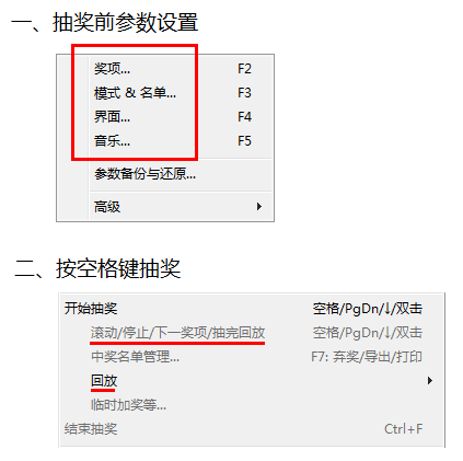 按键方便:按回车开始滚动,按空格停止滚动,按Tab播放颁奖音乐。