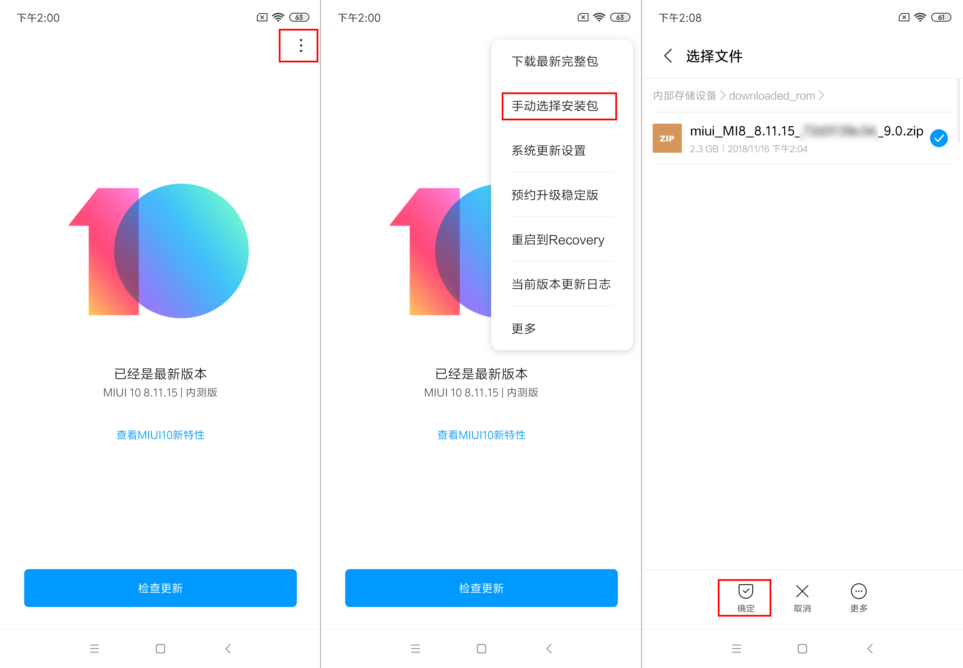 带BL锁机型:只能选择MIUI官方下载页中最新版本进行卡刷升级,非最新外发版本不支持卡刷。