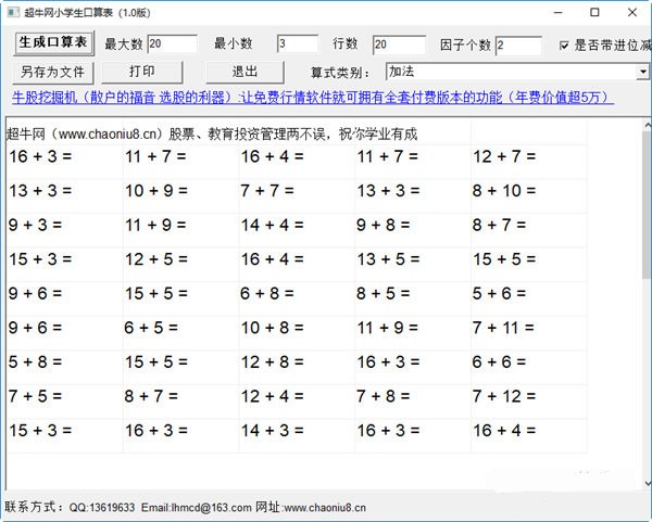 超牛网小学生表是一款能够自动生成各种小学数学口算题的工具,能够生成不同的题目来锻炼孩子的计算能力,支持下载打印题目,有需要的家长朋友不要错过了,欢迎下载使用!