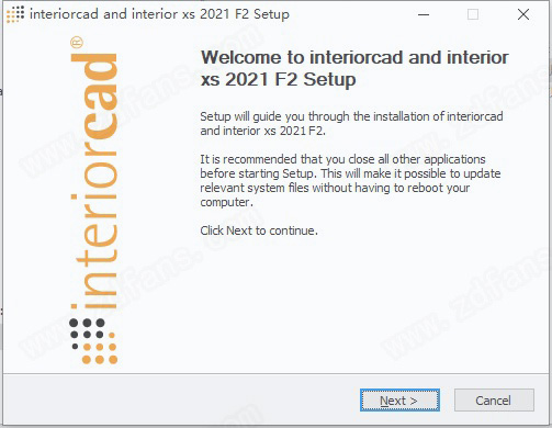 1.在本站下载好数据包后进行得到安装程序“interiorcad-2021-F2-international-setup.exe”,鼠标双击运行进入安装向导点击“next”进入下一步