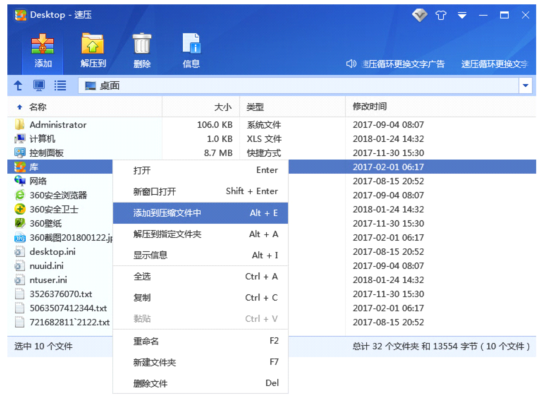 选择自己想要进行压缩的文件或文件夹,点击鼠标右键,在弹出的右键菜单中,选择【添加到压缩文件…】,在新弹出的【您将创建一个压缩文件】窗口中,设置好压缩选项,点击【确定】即可进行压缩操作。如果生成的压缩文件想保存在当前文件夹下,也可选择【添加到“文件名.zip“】,实现快捷的压缩。