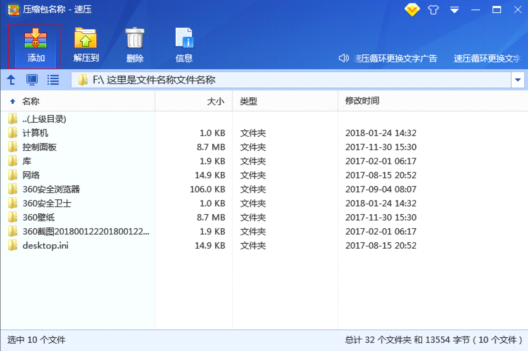 打开速压软件,在主界面中选择想要进行压缩的文件或文件夹,点击工具栏上的添加按钮。
