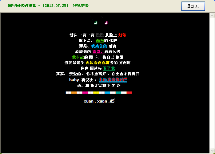 QQ空间代码预览器是专门预览QQ空间代码的工具,内附31条代码。如果日复一日的留言让你发愁,不知道再该如何留下你的只言片语,那么就用代码来表达你无尽的言语吧。用QQ空间代码预览器来预览你的留言代码,让代码美丽而不错过。